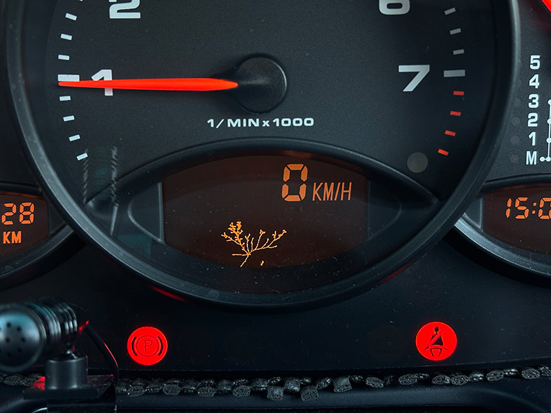 樹脂のダッシュボードですが、皮シボとステッチが型押しされていて可愛らしい。ステアリングもカッコいい。