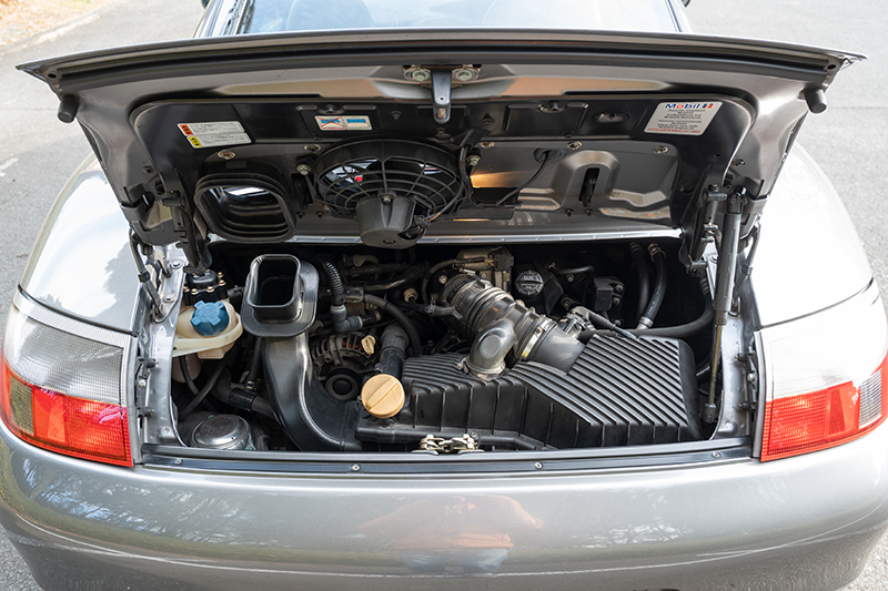 911伝統のリアエンジン後輪駆動です。水冷なので静かですが、ちゃんと水平対向6気筒エンジンのポルシェサウンドが聞こえます。