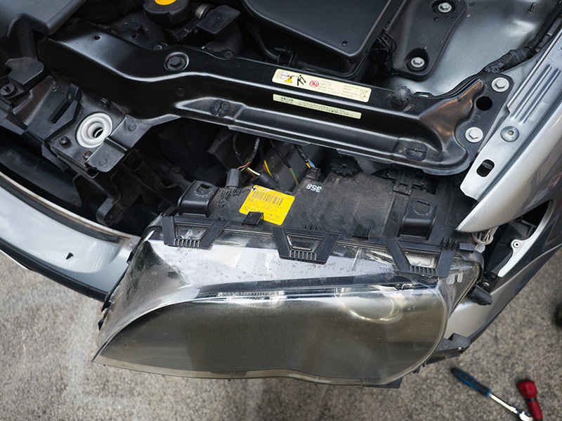 それでも点灯しない症状が発生しているので原因は別にあることが発覚。とりあえずヘッドライトユニットを取り外します。