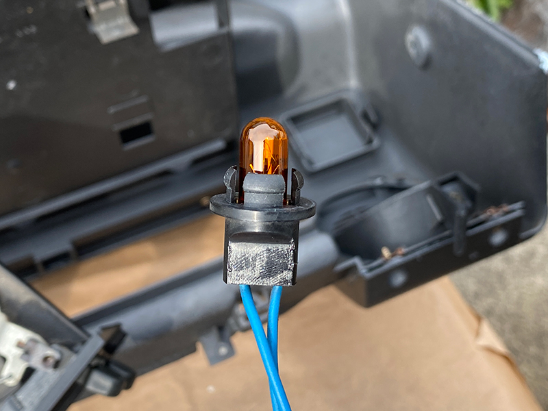 もともとはグリーンのメーター色ですが、オレンジにしたいので照明球はすべてオレンジの電球に交換します。