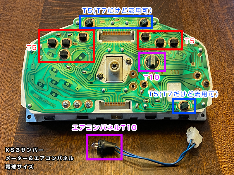 裏面はこちら。なかなか外す機会はないので、メーター球を全て新品に交換しておくことにしました。