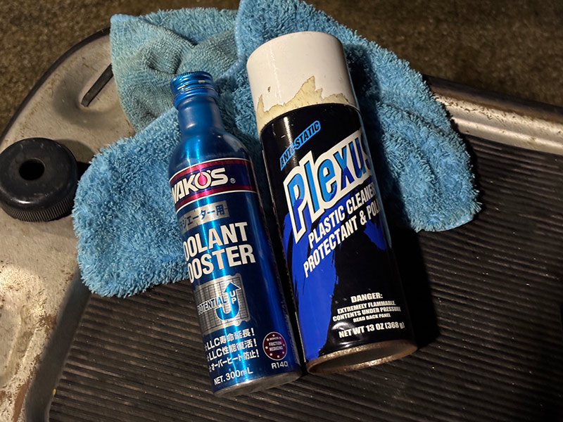 ついでに冷却水が減っていたのでクーラントブースターを入れておきました。これで炎天下のドライブも多少は安心です。