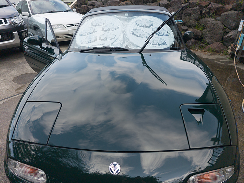 ロードスター専門誌の「ロード&スター」の付録のサンシェードを取り付けました。ダッシュボードがこれ以上劣化しないように対策です。