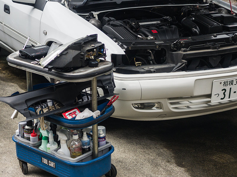 エグザンティアのヘッドライト周辺のバラシは初めてです。