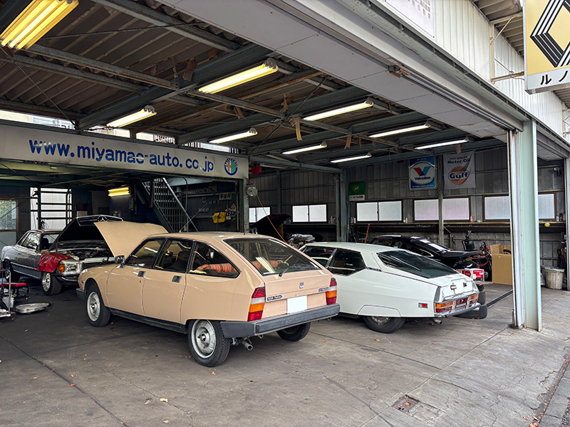 川崎のミヤマエオートさんです。いつ来ても楽しい工場!クラシックなシトロエンがいっぱいで頼もしい。