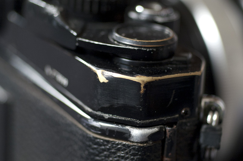 ブラックのペイントが剥げて金色の地金が見えています。すでに見えていたのをもっと出しました。