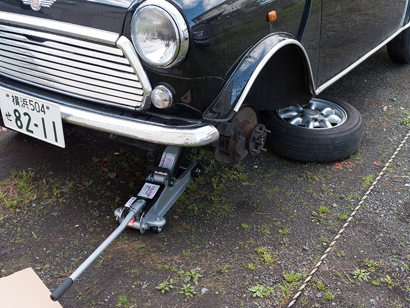 油圧でらくらくー 今更ながらローダウンジャッキを購入しました。なんてジャッキアップが楽なのでしょう!未舗装の駐車場でもらくらくタイヤ交換ができます。早く手に入れておけばよかった。 Meltecの油圧式ローダウン専用ジャッキ2t F-70という製品です。アマゾンで5千円弱で買えるお手頃なローダウンジャッキです。おすすめですよー。