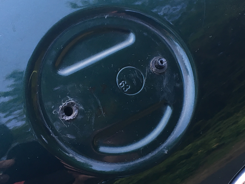 エンブレム交換 ボンネットエンブレムが劣化して退色してしまったので、交換です! 養生して内装剥がしでバリっと行きました。グロメット壊れたので付属のものに交換。 左側が新しいもので、右側が古いもの。輝きが違います。 ヤフオクで社外品を入手。1800円でした。 なんとなくレベルが取れていないのですが、取り付けはグロメットに差し込むだけなので、多分組み立て精度が悪いせいですね。 社外品だからしょうがないですね。 とりあえずきれいになったので良しとしましょう。