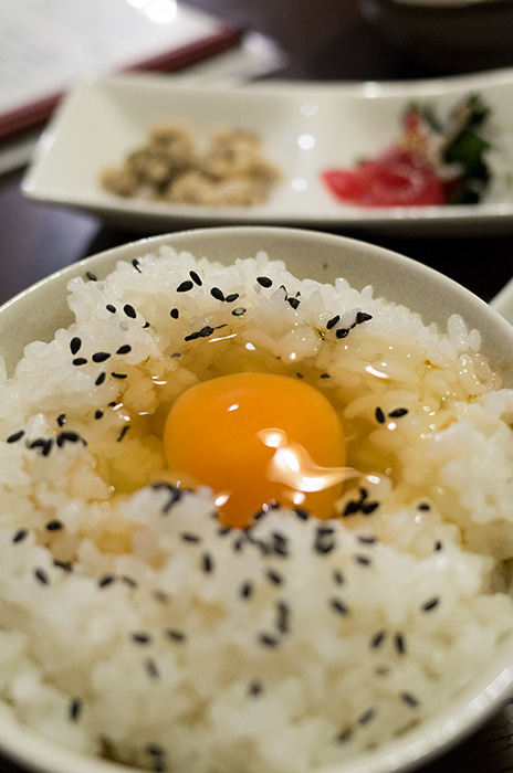 行きつけの居酒屋さんの卵かけごはん。地鶏の卵でとても美味しいのです。卵焼きも一緒に注文すると最高なのです。
