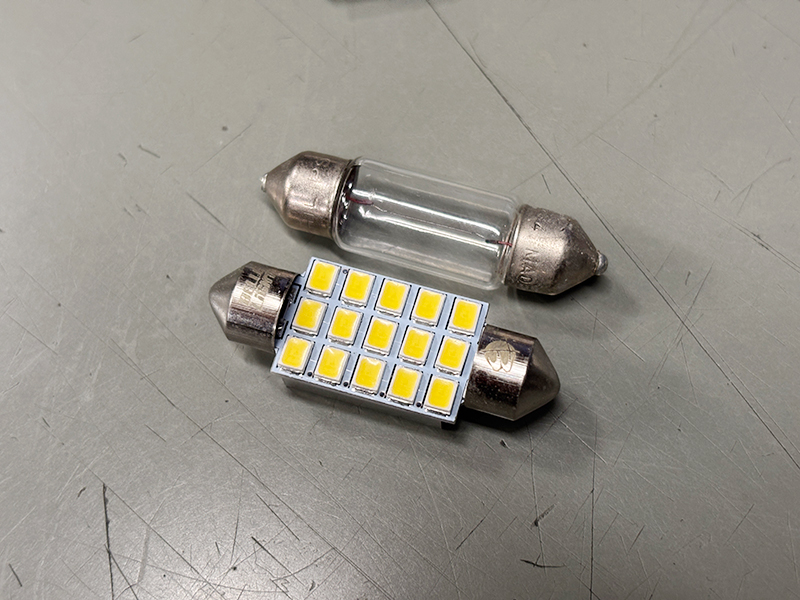 ついでに電球をLEDに交換しました。仕事車なので明るいほうがいいですからね。