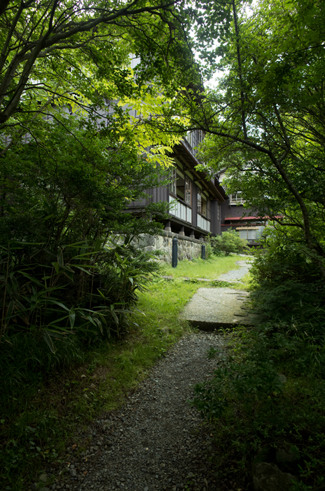 駐車場からこんなかんじで敷地内へ入っていきます。写真だといいかんじですが、人もいないし薄暗くてちょっと不気味です(笑)